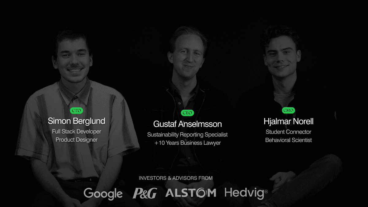 We create impact by gathering sustainability data from all companies and make it a no-brainer for people to act on it. We're doing this by creating a bank app where you get info on every company you buy from, and incentives to switch to better alternatives.