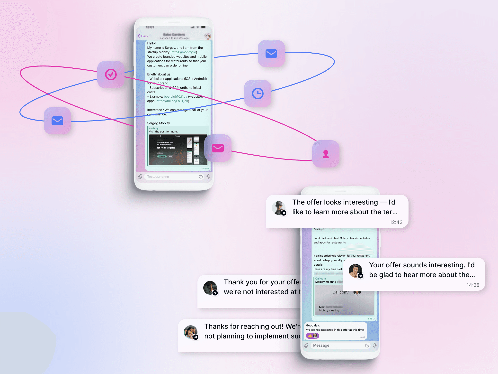 Automated lead capture, personalized messaging workflows, CRM-synchronized communication inside Telegram